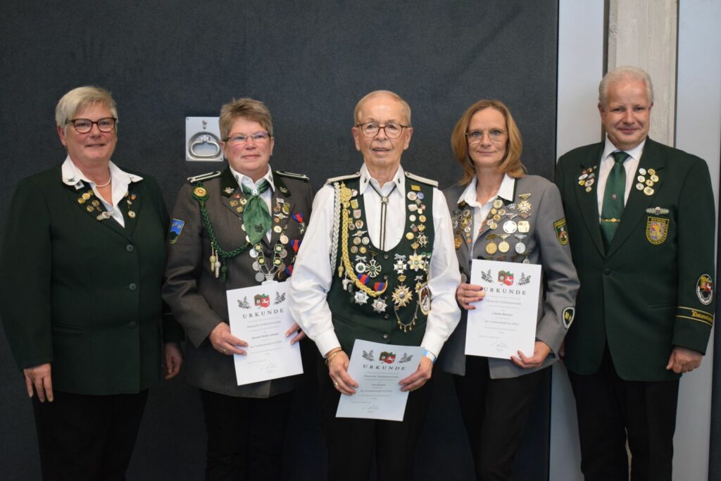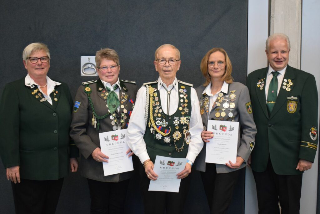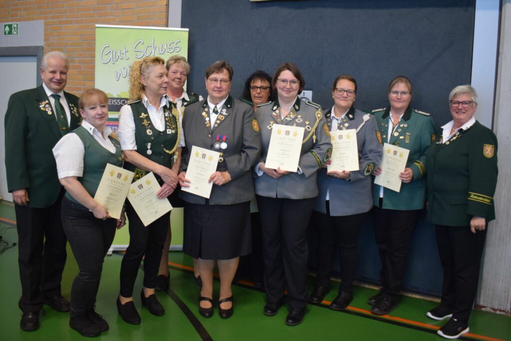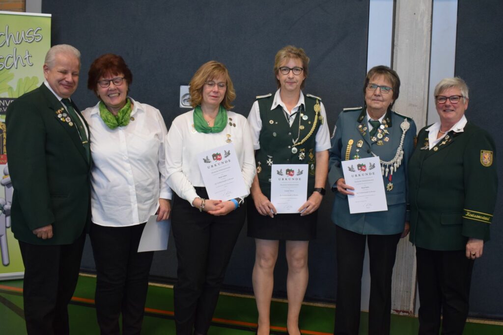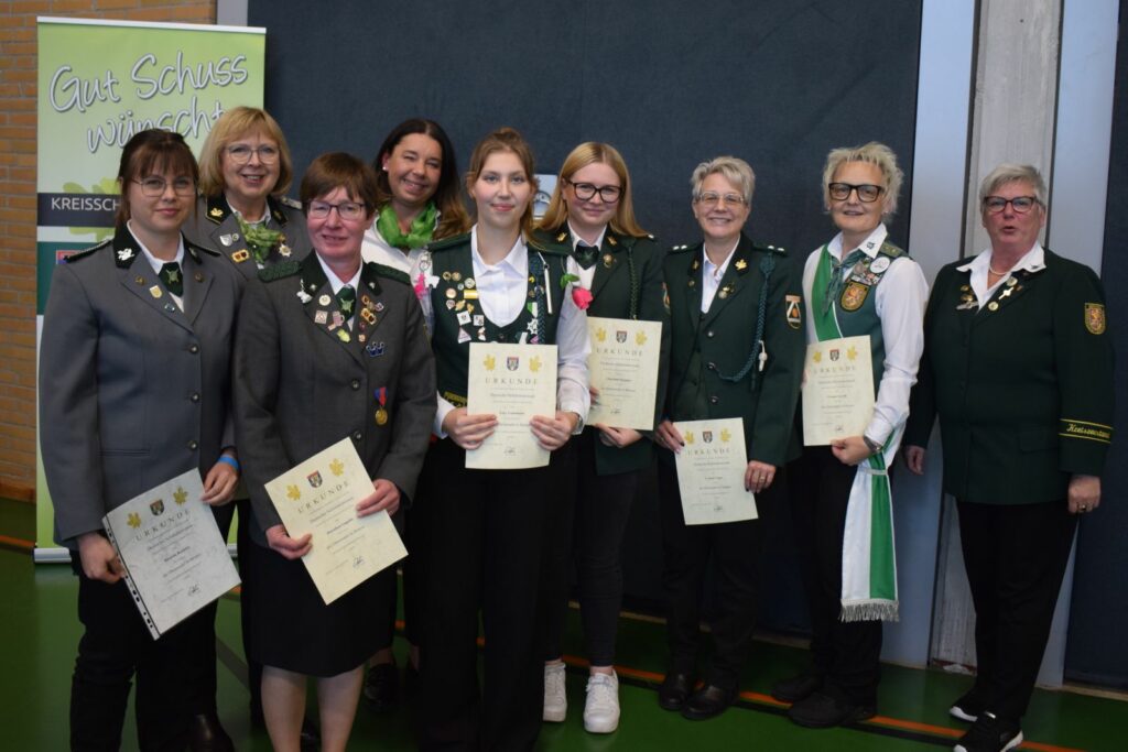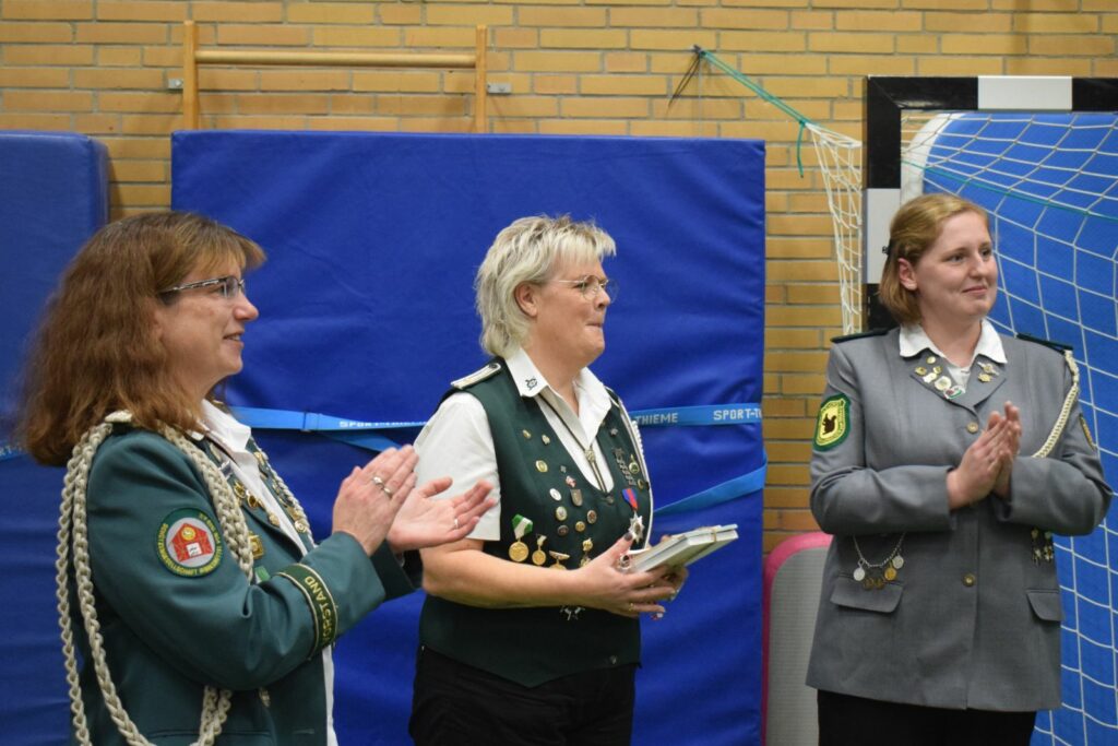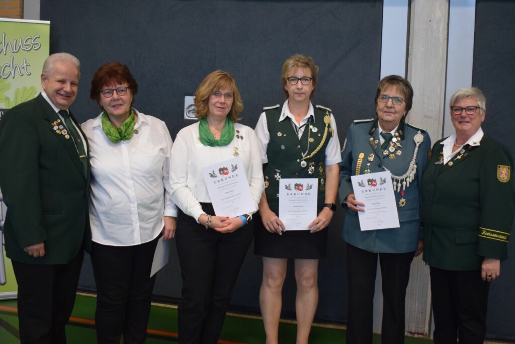 Ein umfangreicher Tagesordnungspunkt waren zunächst verschiedene Ehrungen. Hier wurden Verdienstnadeln des Kreisschützenverbandes sowie des Niedersächsischen Sportschützenverbandes an verdiente Schützenschwestern überreicht, die sich über viele Jahre ehrenamtlich in ihren Vereinen oder auch im Kreisverband eingebracht hatten.