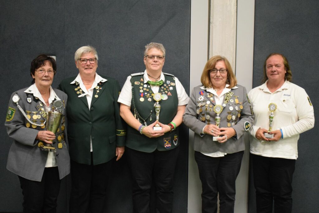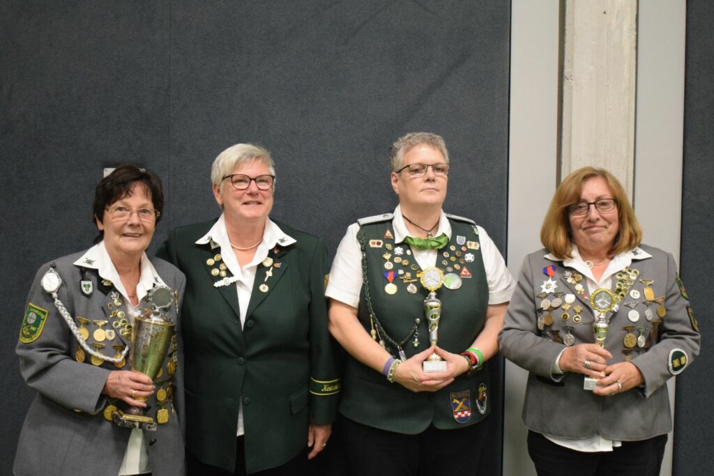 Auch der Tagesordnungspunkt Auszeichnung der Schützinnen aus dem im Sommer durchgeführten Schießwettbewerben, nahm auf Grund der guten Beteiligung breiten Raum ein. Hier gab es verschiedene Pokalwettbewerbe mit Mannschafts- und Einzelplatzierungen. Für ein ebenfalls durchgeführtes Preisschießen gab es wieder viele schöne Preise, so dass den erfolgreichen Teilnehmerinnen die Auswahl oft recht schwerfiel.